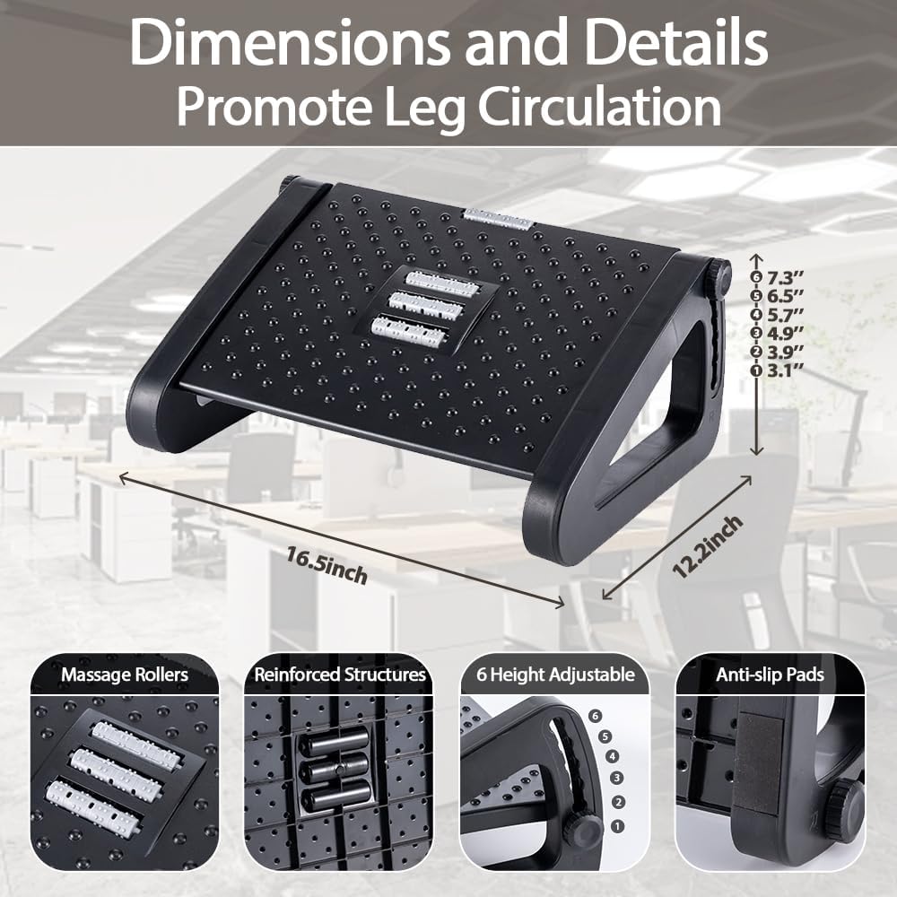 An adjustable ergonomic foot rest with massage roller is one of the most cost-effective ways to improve desk comfort and posture. It supports healthier sitting, reduces fatigue, and adds subtle movement that keeps you comfortable during long work hours.